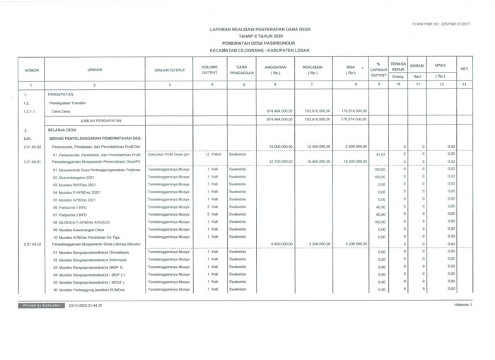 Laporan Pertanggungjawaban Dana Desa s.d. Tahap II 2020 |