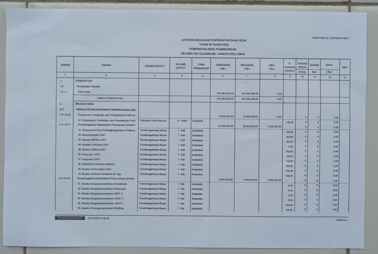 Laporan Pertanggungjawaban Dana Desa s.d. Tahap III 2020 |